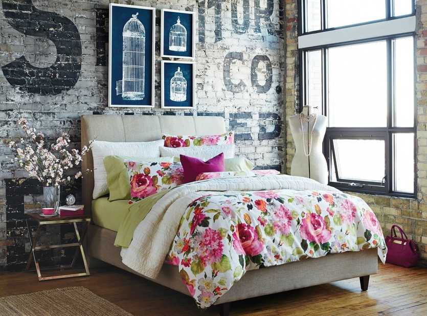 В этом ключе подбирают постельное белье, покрывало, чехлы для валиков и подушек. Чередуют однотонные и узорные ткани. Яркую кровать дополняют плотными декоративными подушками, повторяющими узоры. Шторы могут быть плотными однотонными, защищающими от яркого света или совершенно невесомыми. Например, из органзы или шифона