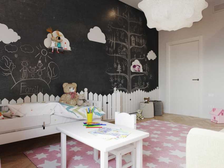 Хотите развивать творческие способности ребенка – установите в детской доску для рисования мелом, и ваше маленькое сокровище получит идеальный многоразовый холст для своих картин. Он же послужит и для разборки домашних заданий, и для напоминаний ребенку о важных делах, которые он должен выполнить.