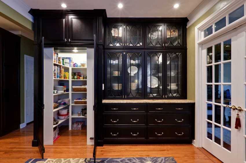 Кухонная кладовка может быть отдельным небольшим помещением, нишей, открытой конструкцией