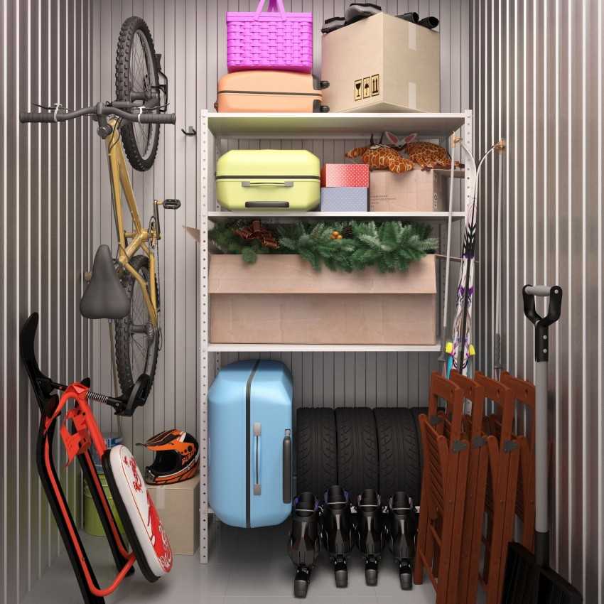 Оборудование будет зависеть от габаритов хранилища и его функционального назначения. Самым рациональным решением в обустройстве подсобного помещения считается установка навесных полок, которые не перегружают и не загромождают пространство