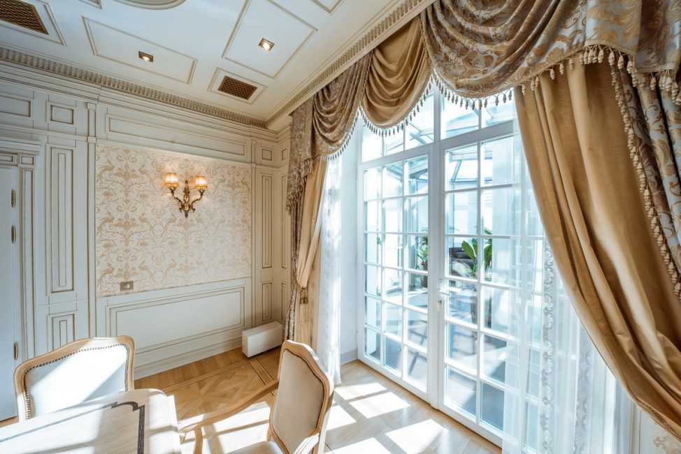 Это одни из самых популярных карнизов, которые можно встретить на фото многих дизайнеров. Модели этого типа визуально поднимают потолок, впускают в помещение воздух и одновременно смотрятся торжественно.