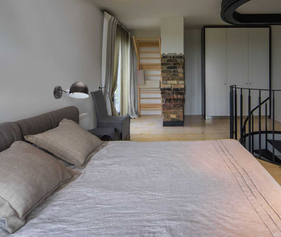В спальне отдыхают вечером либо принимают гостей, если комната объединена с гостиной. Естественно, там находится удобная мягкая мебель. Для подсветки около неё монтируют светильники локального освещения.