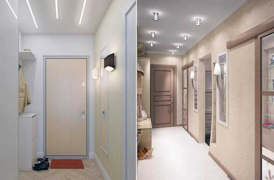 При узких коридорах следует устанавливать плоские светильники на стены с «дневным» освещением, чтобы они занимали меньше места.