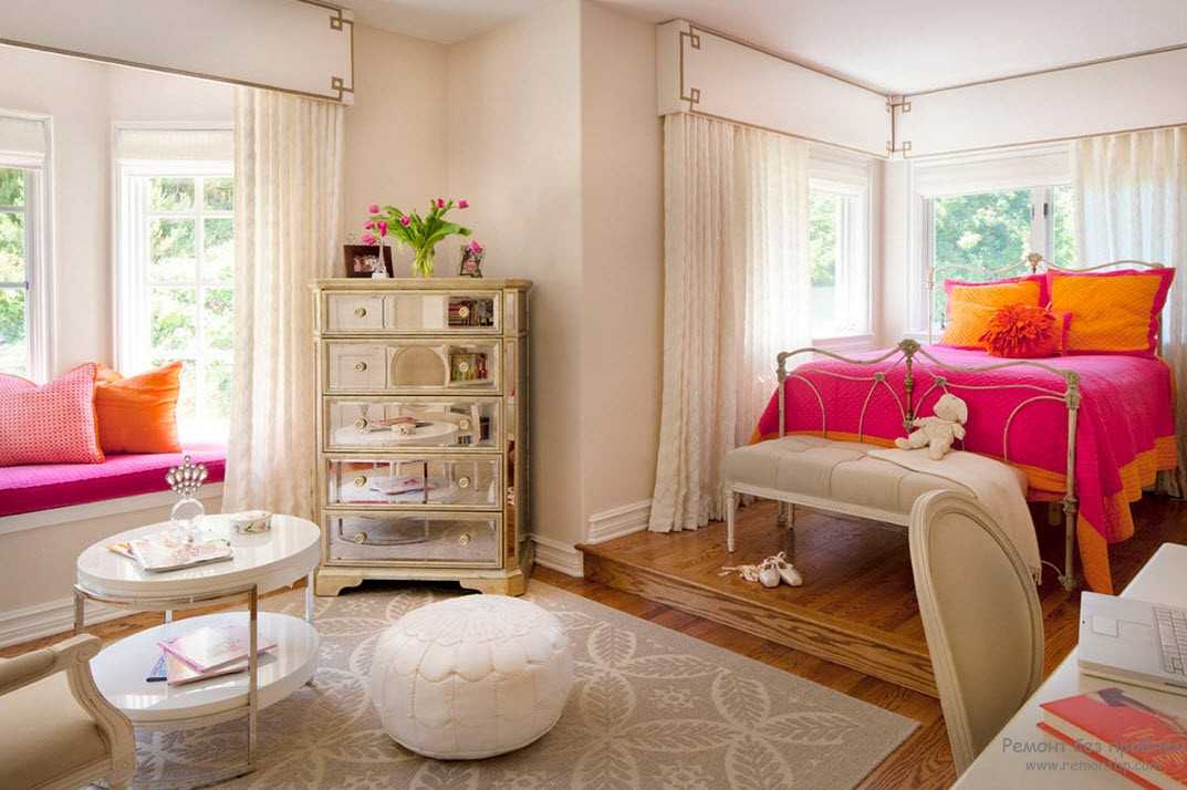 Более фривольная трактовка интерьера хоть и открыта для цветовых экспериментов, однако может не принять сверх изысков