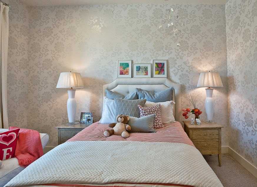 Акцент на детали можно выполнить в виде ярких пятен. Для этого можно подобрать красивые фотообои, необычные статуэтки, прикроватные лампы или текстильное оформление в контрастном тоне.