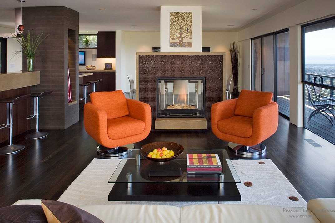 Совет! Чем современнее стиль интерьера, тем более яркие и насыщенные оттенки оранжевого можно в нем использовать — тыквенный, морковный, апельсиновый, а также цвет киновари. Для традиционных интерьеров больше подойдут строгие оттенки оранжевого — горчичный, охровый, янтарный, медовый, кирпичный, терракотовый, каштановый, ржавый.