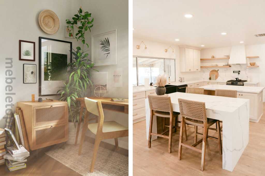 Нередко плетёные элементы дополняют мягкую или корпусную мебель, являясь элементом их декора.