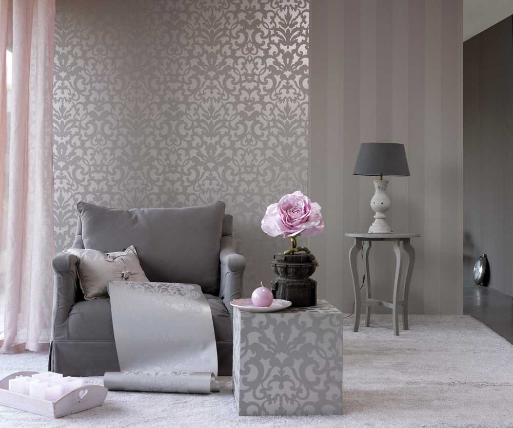 Орнамент должен быть крупным. Если весь декор и мебель будут монотонными, то узор должен быть насыщенным. Стену, возле которой планируете поставить мебель, лучше оклейте просто однотонными обоями без изображений.