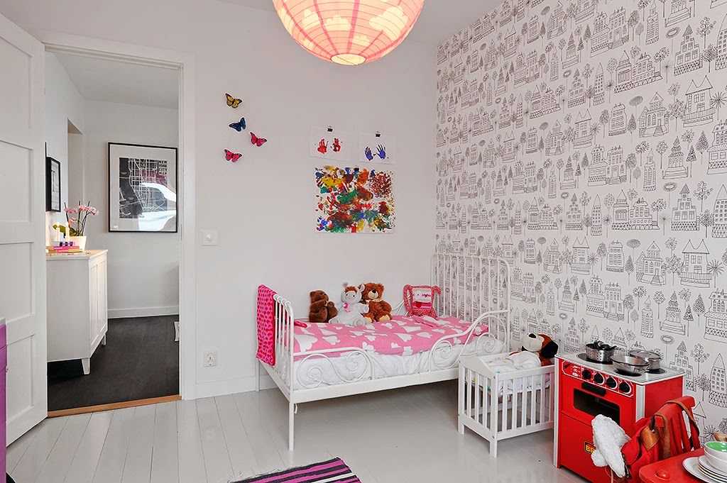 Ещё один распространённый вариант белых обоев в детской – это флизелиновые (моющиеся). В этом случае выбор становится оптимальным для обеих сторон: для родителей, которые хотят сохранить стиль интерьера в доме и для детей, которые любят порисовать на них. Белые обои можно использовать для регулярного рисования с детьми (конечно этот процесс вечным быть не может и через пару лет их придётся обновить) или для создания художественного шедевра один раз. Создайте такой рисунок вместе с ребёнком и он каждый день будет видеть плод вашей совместной деятельности, или проявите творчество сами. Уникальность таких обоев будет естественно неоспоримой.