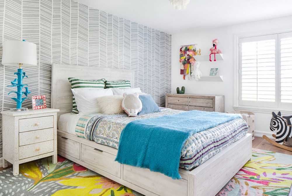 Стены с разными обоями чаще всего встречаются там, где необходимо сделать визуальное зонирование помещения. Зонирование в детской комнате – это хороший способ наглядно подсказать ребёнку как его комната разделяется по функционалу. Яркими тонами оклеиваются стены в учебной и игровых частях помещения, в то время как у спального места можно сделать стильную, из более тёмных оттенков стену. Разными цветами можно не только распределить комнату на части, но и психологически помочь ребёнку адаптироваться к разным видам деятельности.