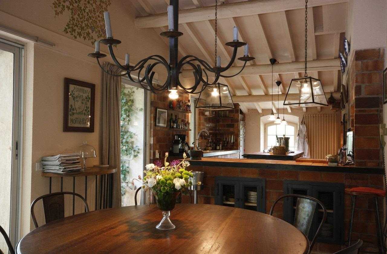 Стиль кантри поддерживает и освещение, которое тут играет важную роль в доме. Кованные канделябры на стенах, люстра с вычурными линиями и узорами, лампы, стилизованные под свечи, настоящие подсвечники с витиеватой резьбой — все это создает атмосферу старого загородного поместья.