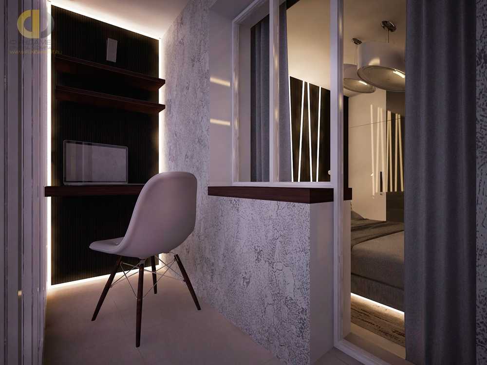 Необычный дизайн лоджии в квартире, фото показывает дизайн интерьера непрямоугольного помещения 8 кв м