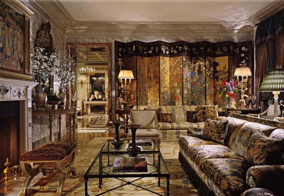 К таким материалам можно отнести натуральное дерево, серебро, хрусталь, камни, мрамор, бронзу и позолоту. Каждая деталь должна быть роскошной.
