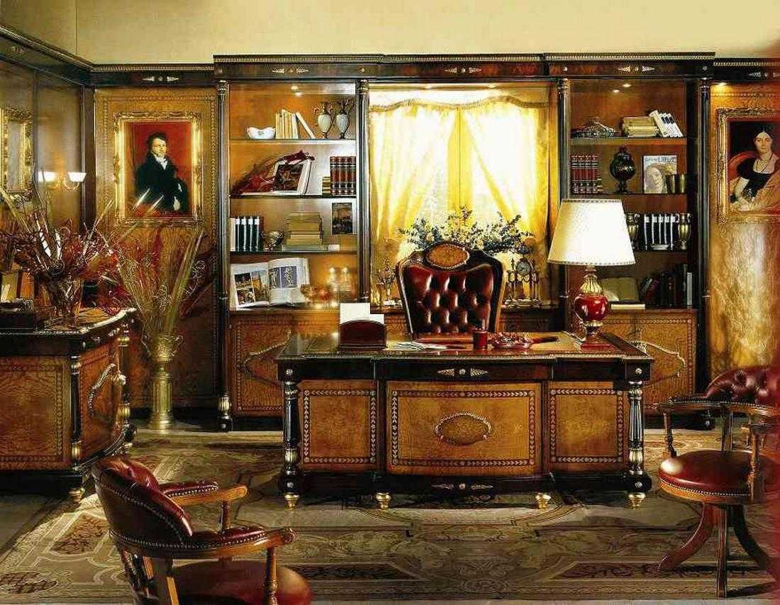 О мебели стоит поговорить отдельно. Она должна быть дорогой. Массивная мебель, изготовленная из натурального дерева, станет отличным украшением помещения.
