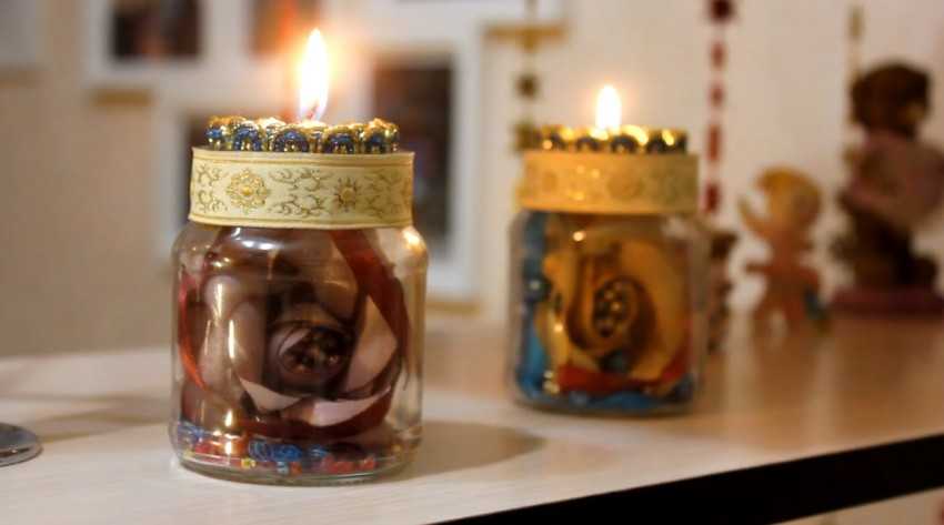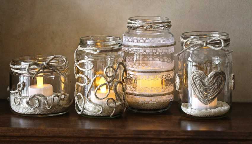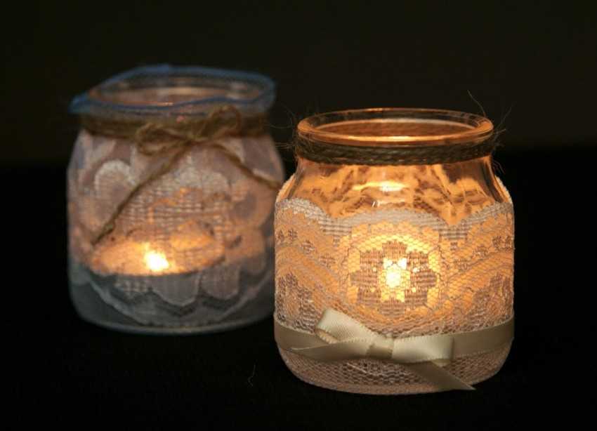 Обыкновенные баночки станут прекрасным подсвечником