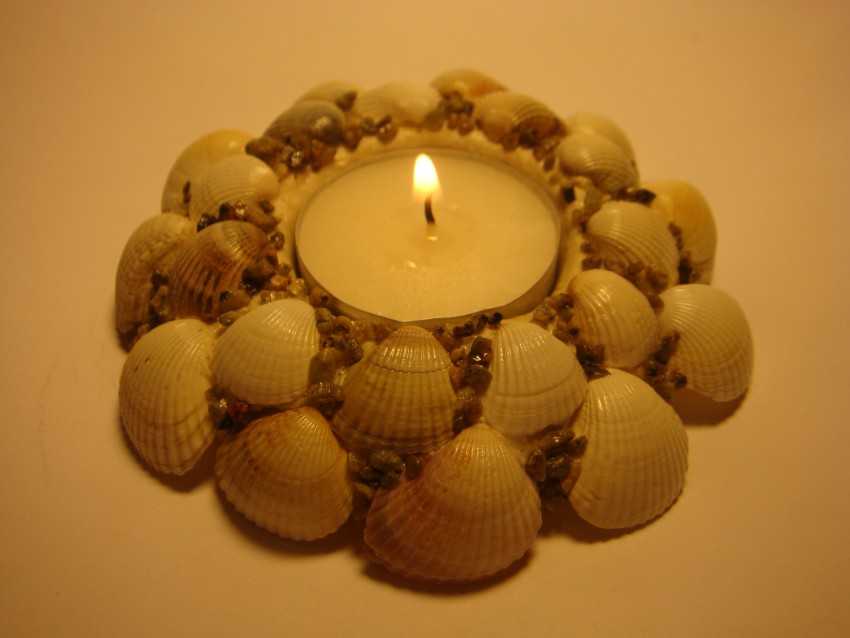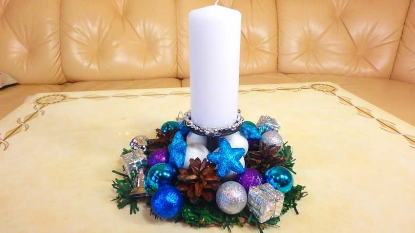 Получившийся подсвечник станет украшением любого стола и будет эффектно смотреться на белоснежной праздничной скатерти.