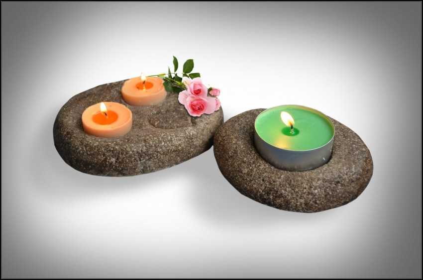 Оригинально будут смотреться свечи в виде камней . Ими можно дополнить встречу в экостиле, а также свидание в комнате с минималистичным дизайном.