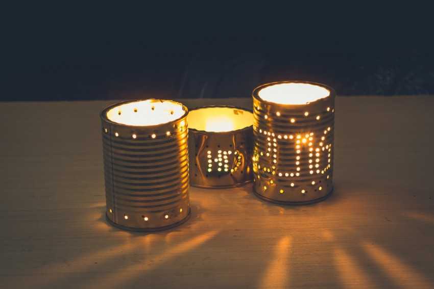 Подсвечники из жестяных банок