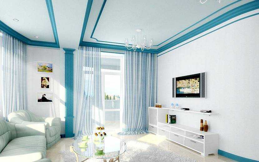 Если комната выходит на юг и часто залита солнцем, то для отделки используют прохладные оттенки. Свежая, воздушная гамма представлена от нежного ледяного до сдержанной пастели или насыщенного голубого (лазурного). Чтобы помещение не выглядело унылым, обязательно комбинируют с коричневым (бежевым) или белым (серым).