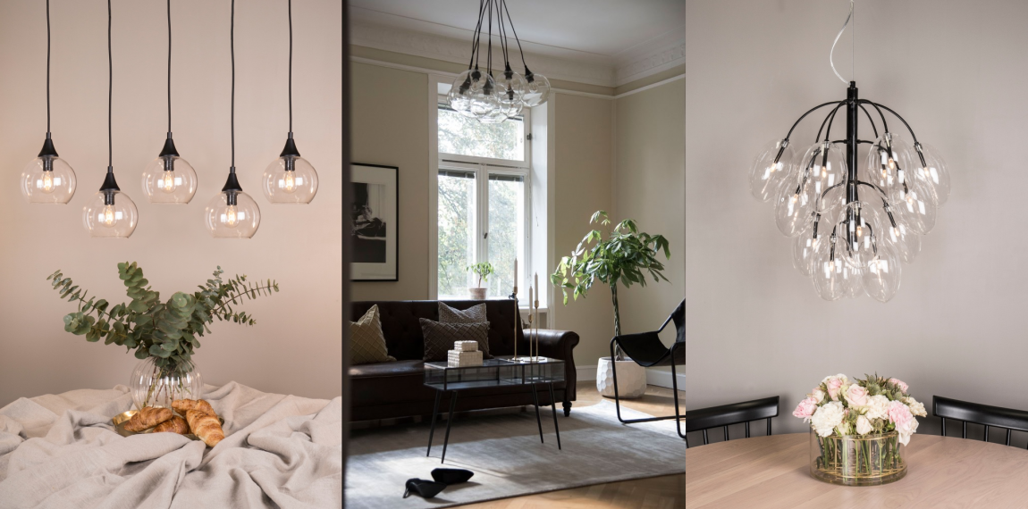 Явный фаворит в мире осветительных приборов — светильники «пузыри» с прозрачными плафонами, сквозь которые видно лампочку. Такие модели вдохновляются ретро середины прошлого века, но выглядят очень современно, а за счёт прозрачности визуально не перегружают пространство.