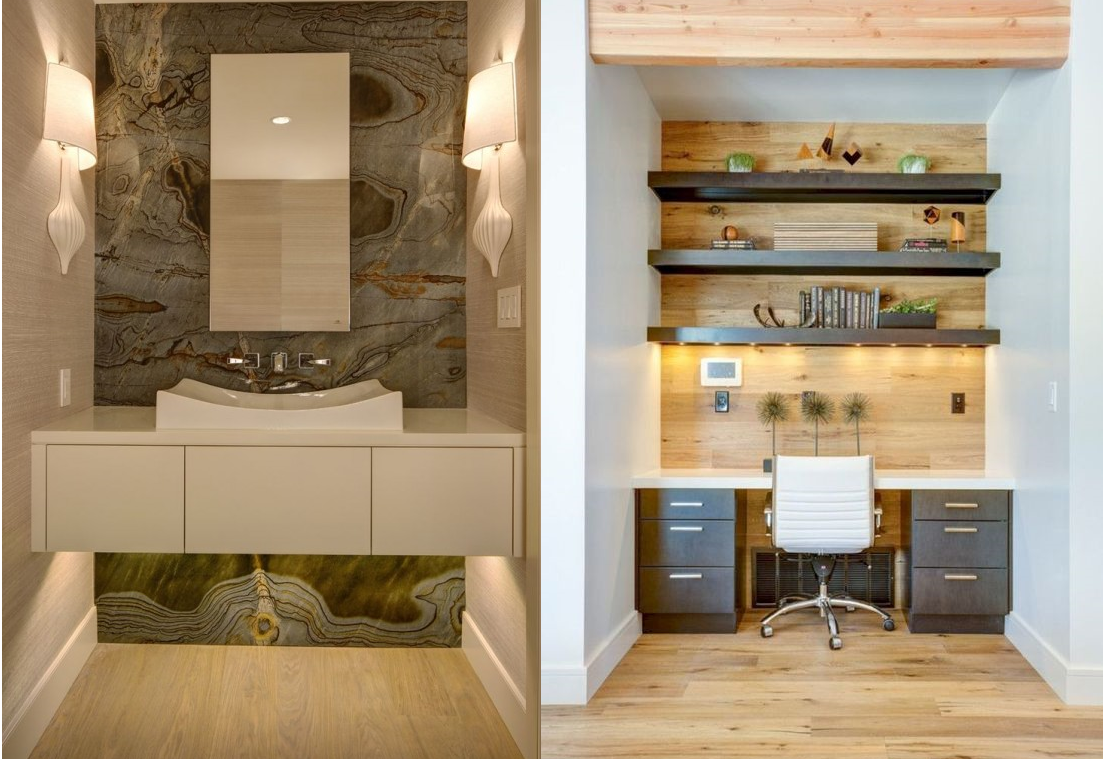 Местное освещение гораздо упростит поиски необходимых предметов и поможет лучше разглядеть себя в зеркале. Обычно локальный свет обустраивают в районе шкафа, зеркала, полки с мелочами и т.д. Если речь идет о шкафе-купе, то светильники можно встроить в стенки, козырек и корпус, и настроить систему так, чтобы свет автоматически включался при открывании двери.