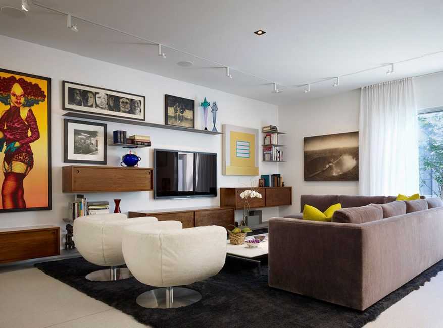 Чаще всего телевизор располагают в зоне отдыха гостиной. Как гармонично вписать его в общий интерьер? На этом остановимся более детально.