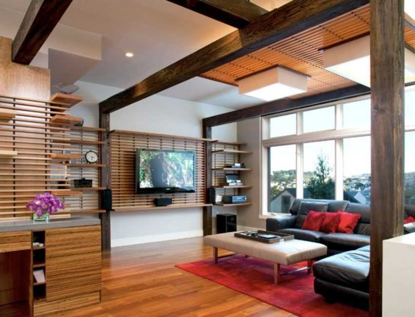 При продуманном подходе и грамотном комбинировании тв-модели с другими интерьерными предметами зала, получается органично вписать данное устройство практически в любое стилевое направление.