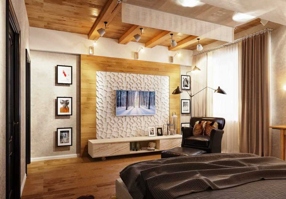 Располагая экран на стене, мы, тем самым, делаем на ней акцент. ТВ становится центральной частью стены, но он должен гармонично вписываться в общую стилистику комнаты.
