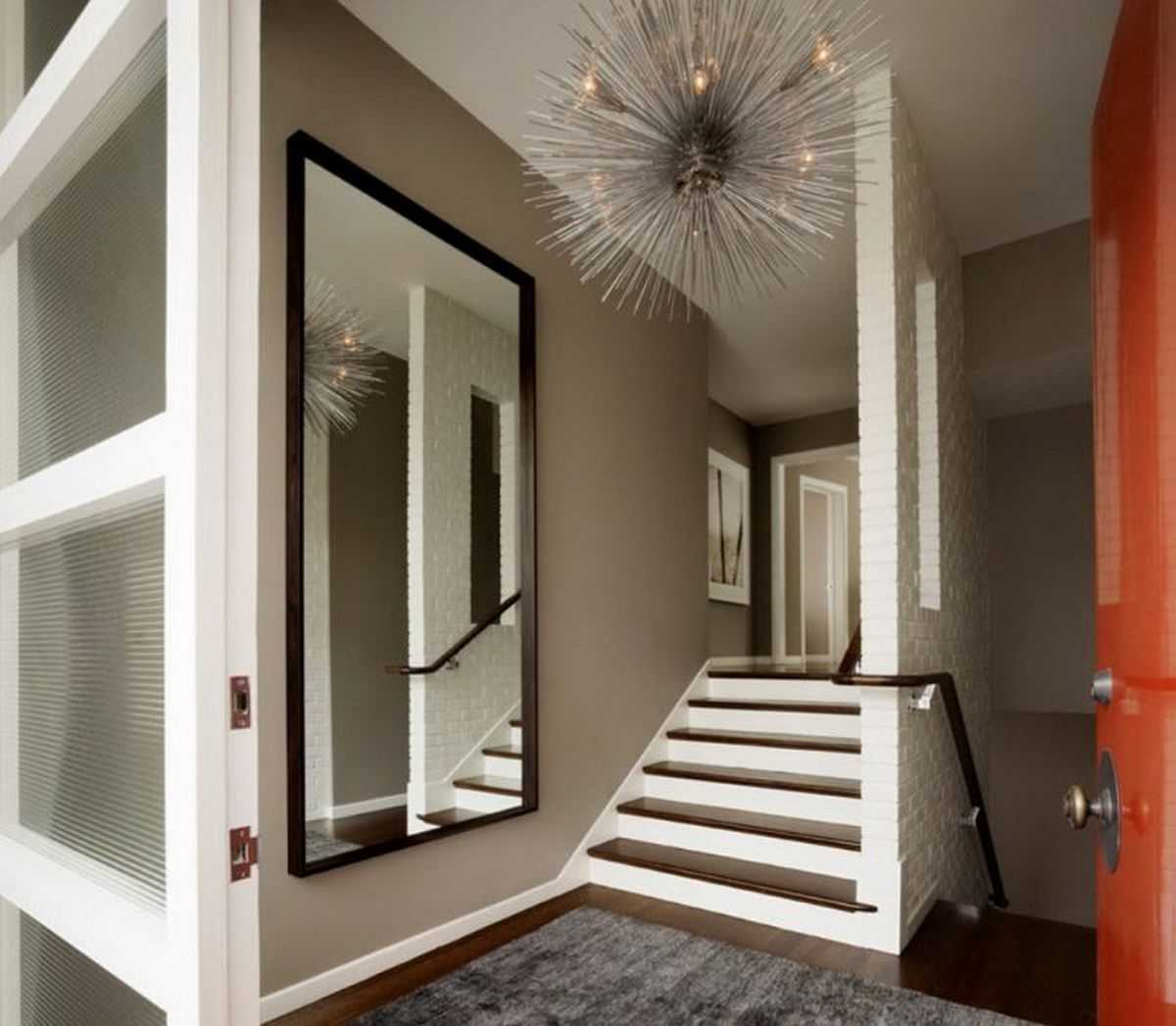 Поэтому тут лучше использовать большие функциональные зеркала в раме в интерьере. Можно также повесить зеркало прямо на входной двери, если Ваша «первая» комната слишком маленькая.