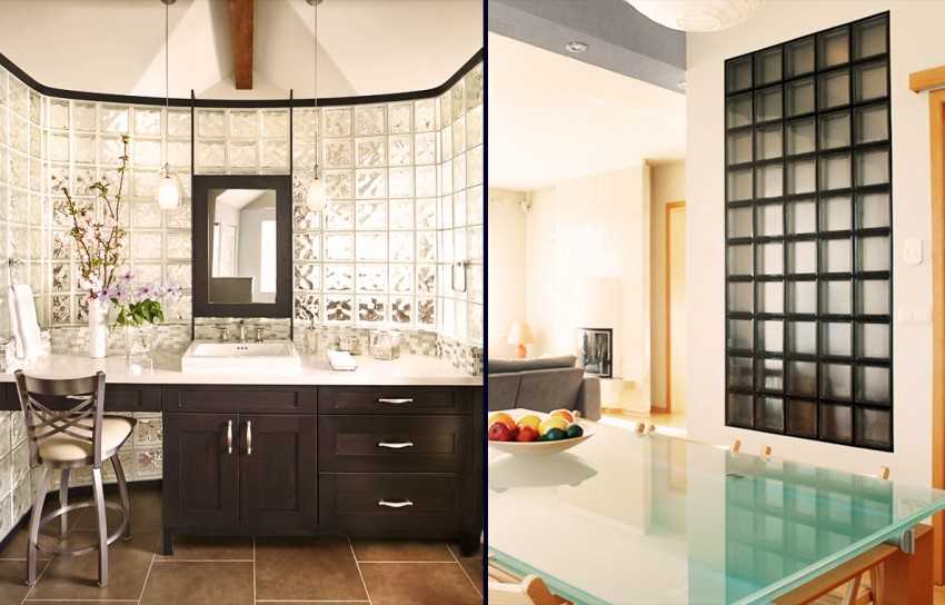 Например, установив стеклоблоки между ванной и кухней на месте фрамуги вы одновременно получите декор и дополнительную подсветку. А прорубив проем в глухой стене между гостиной и спальней без окна — сделаете зону отдыха уютнее за счет попадания естественного света.