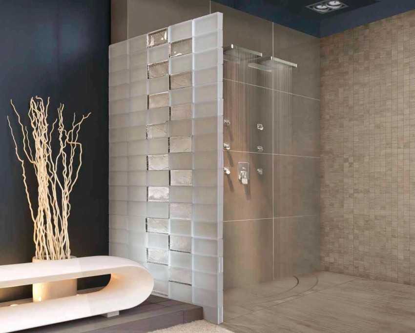 Возведение стен может пригодиться в студиях — например, для выделения спальной зоны в помещении open space или четкого разделения пространства для готовки, отдыха. Перегородками из стеклоблоков в интерьере ванной часто выделяют душевые.