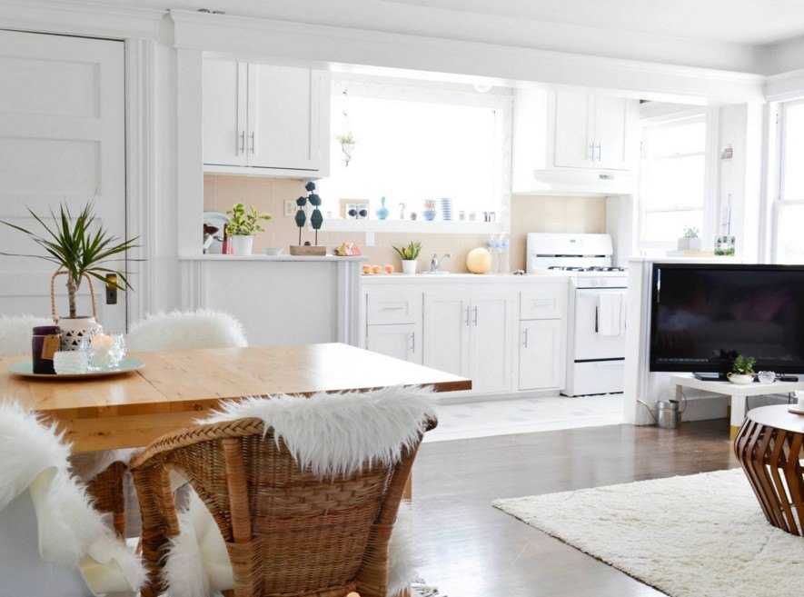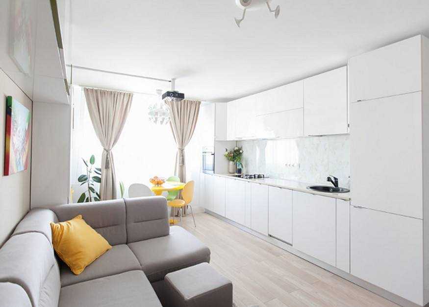 Белые стены и потолок визуально увеличат не только высоту потолка, но и общую площадь небольшой квартиры