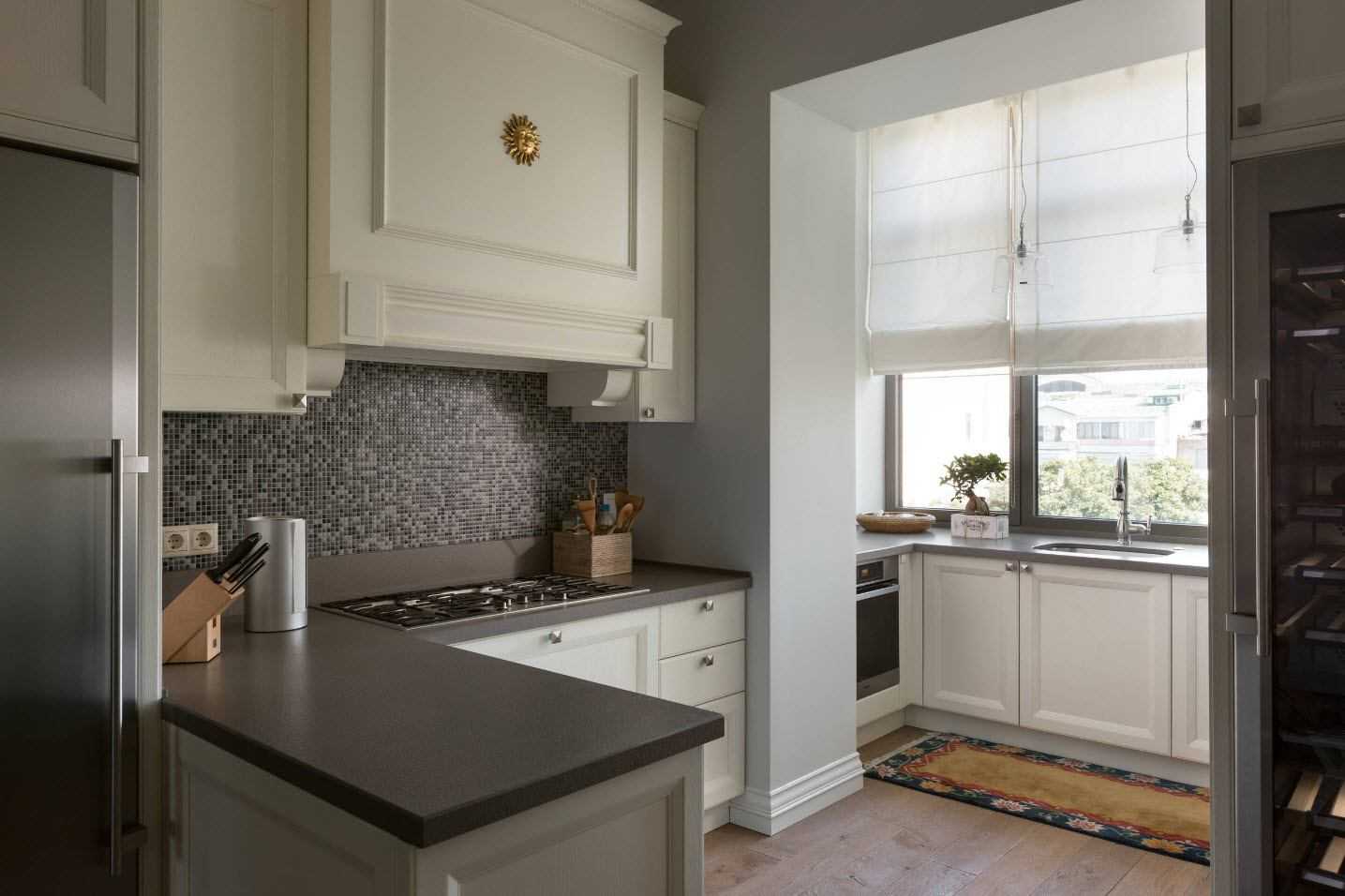 Чтобы гармония интерьера не была нарушена, достаточно оформить балкон (лоджию) в том же стиле, что и кухня.