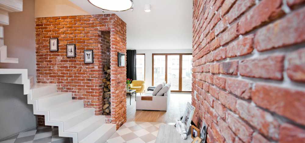 Если выполнить облицовку стен прихожей, используя декоративный кирпич в интерьере, можно избавить себя от необходимости делать очередной ремонт через короткий промежуток времени. Кирпич является экологичным и долговечным материалом, поэтому на стене из кирпича не появится грибок или плесень.