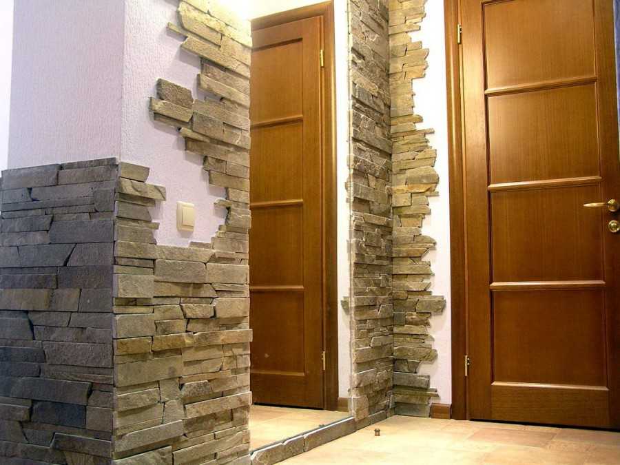 Частичная отделка прихожей искусственным камнемИсточник mirkam22.ru/