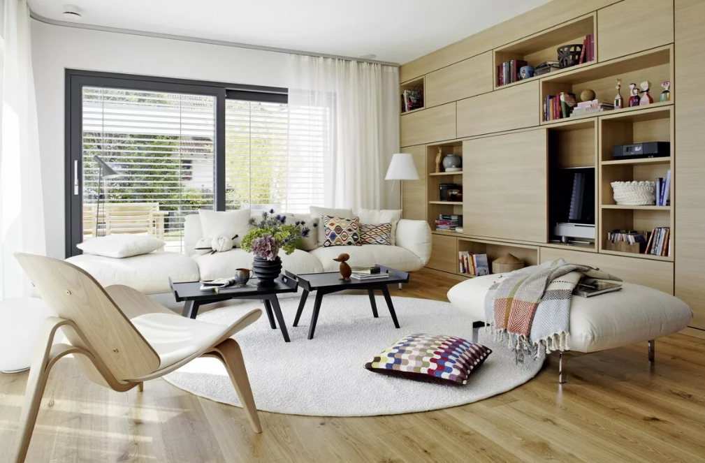 Дизайн интерьера 2021 предполагает использование ковров. Однако речь не идет о привычных прямоугольных коврах.