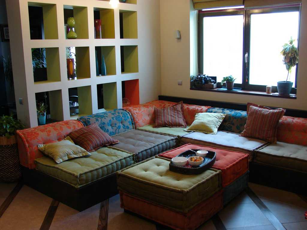 Мягкая мебель в соответствии с последними веяниями моды перестает быть громоздкой, помогает экономить место за счет отсутствия подлокотников.