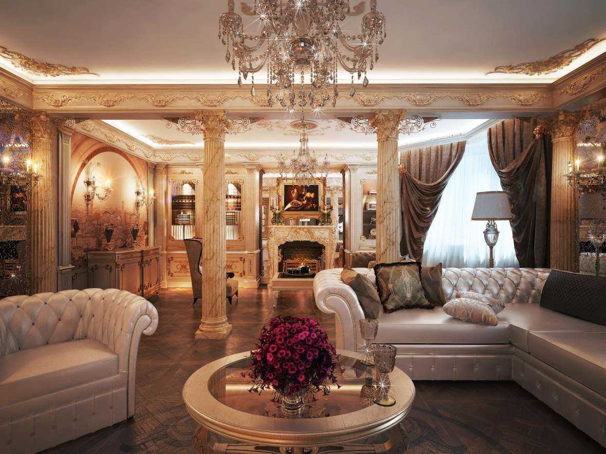 Шикарная гостиная комната в классическом стилеИсточник katchoi.wixsite.com/