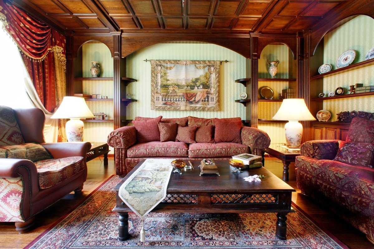 В интерьере гостиной в английском стиле в Григорианскую эпоху становится традицией использовать античные элементы: это карнизы, красивые фризы и пилястры. Когда наступил период правления королевы Виктории, пришли в гостиные экзотические предметы из Африки и Азии, где были колонии.