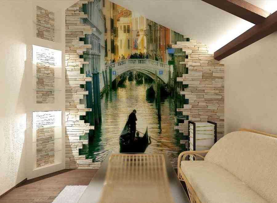 Подобное в современном мире называется 3D-эффектом. Через него предается естественное наполнение интерьера реалистичными композициями. Инновационные краски не выгорают под воздействием ультрафиолетовых лучей, потому что имеют качественную структуру.