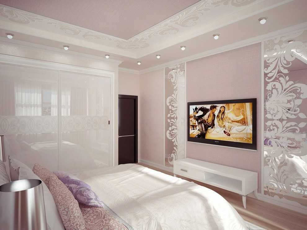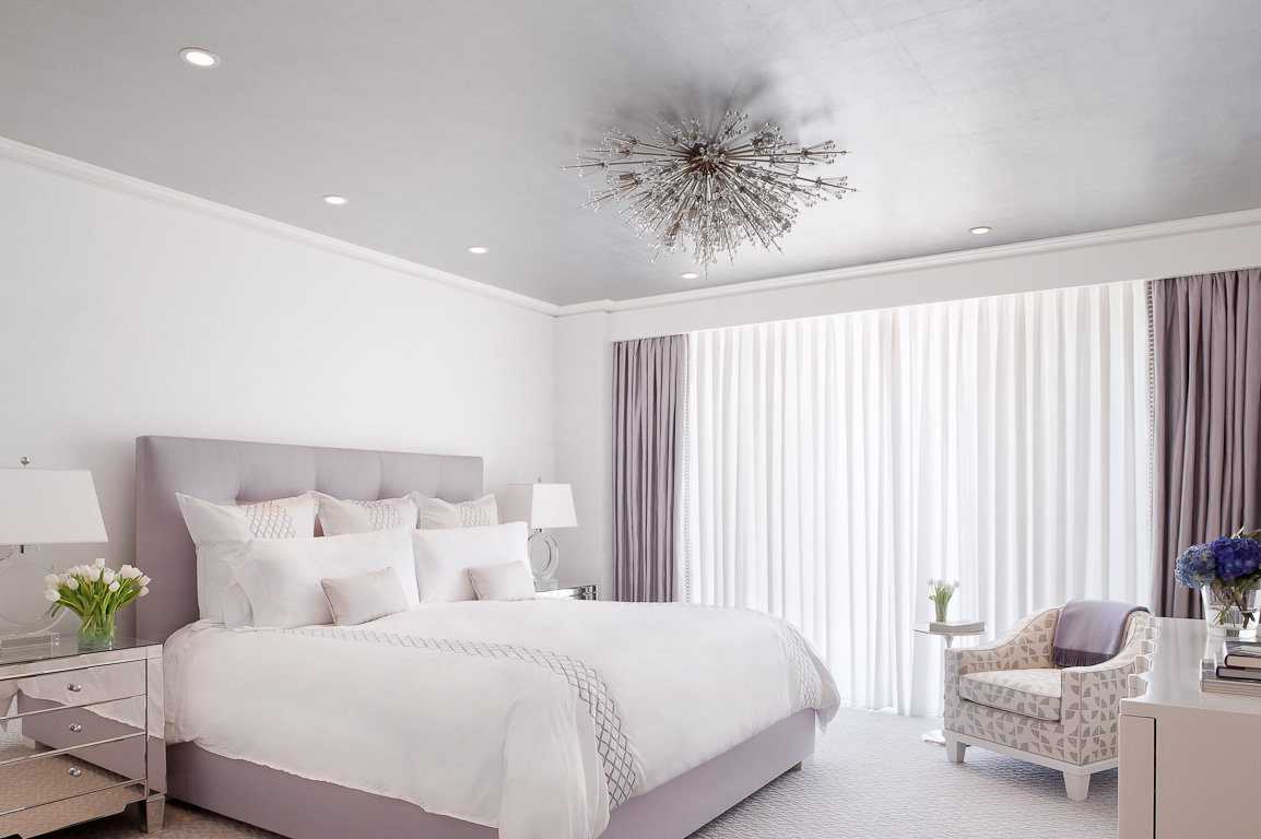 Чистая, светлая спальня в стиле гламур — это отличная идея дизайна интерьера для молодой женщины, которой характерен современный, но девичий стиль. Светлая спальня может быть подчеркнута несколькими дополнениями: розовое изголовье из блока интересной фактуры, которое украшено торшерами. Прикроватные светильники также хранятся в этом стиле. Целое дополняется богатой люстрой, которая не только осветляет и расширяет спальню, но и дает вам возможность наполнится нотками роскоши.