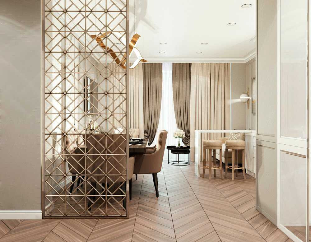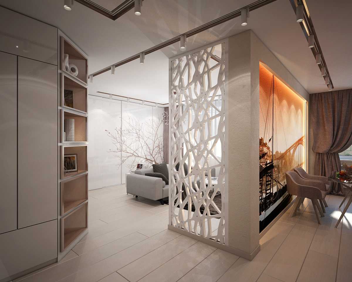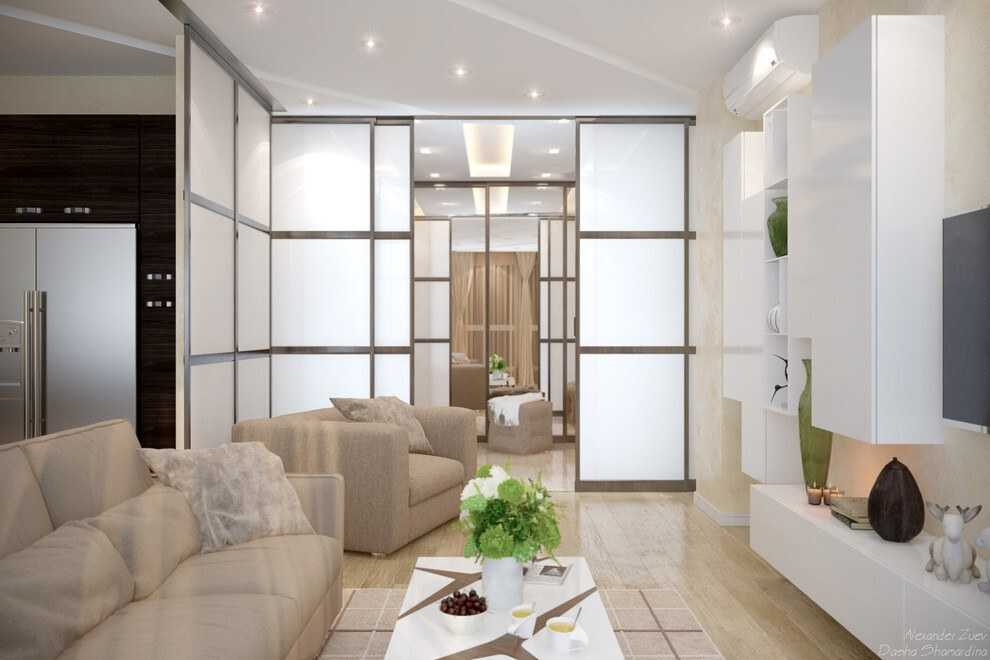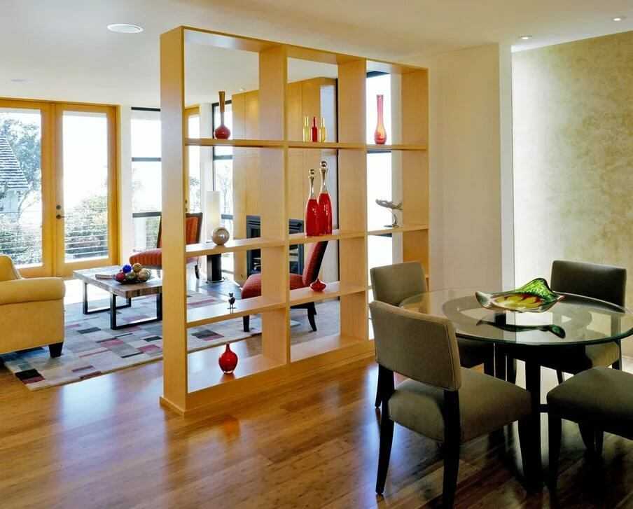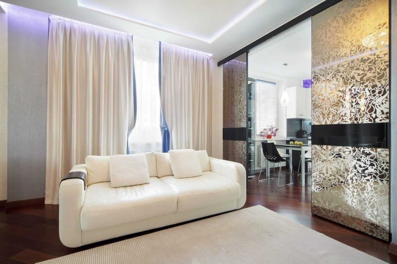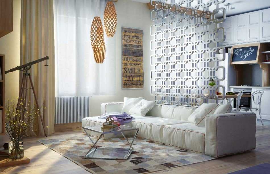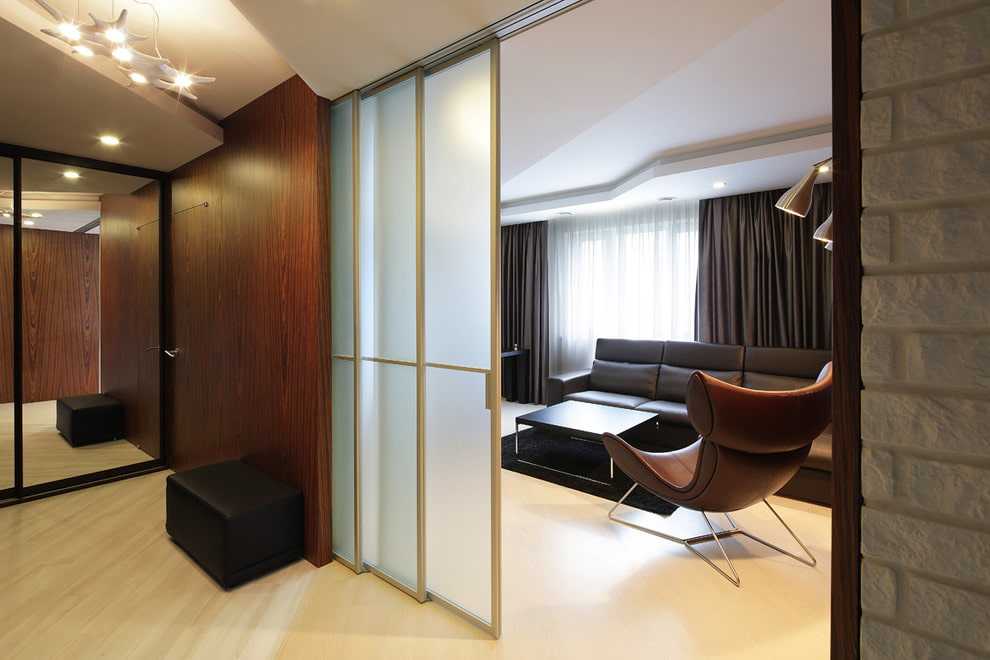 В современной планировке зала перегородки и ширмы играют важную роль. Стильные стеклянные, пластиковые и деревянные перегородки способны создать уникальную атмосферу комнаты и разделить пространство на функциональные зоны.