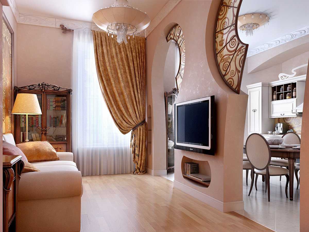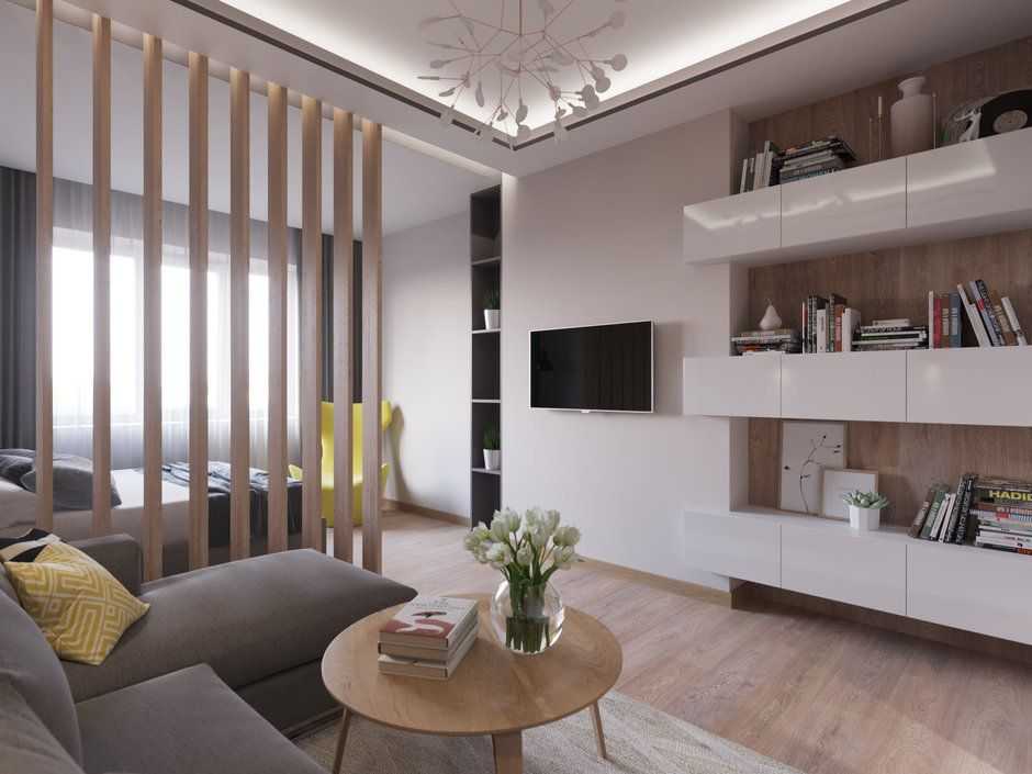 Часто зал в квартире является не только помещением для приема гостей, но и жилой комнатой, особенно в однокомнатных квартирах или студиях. В этом случае появляется необходимость зонирования помещения.
