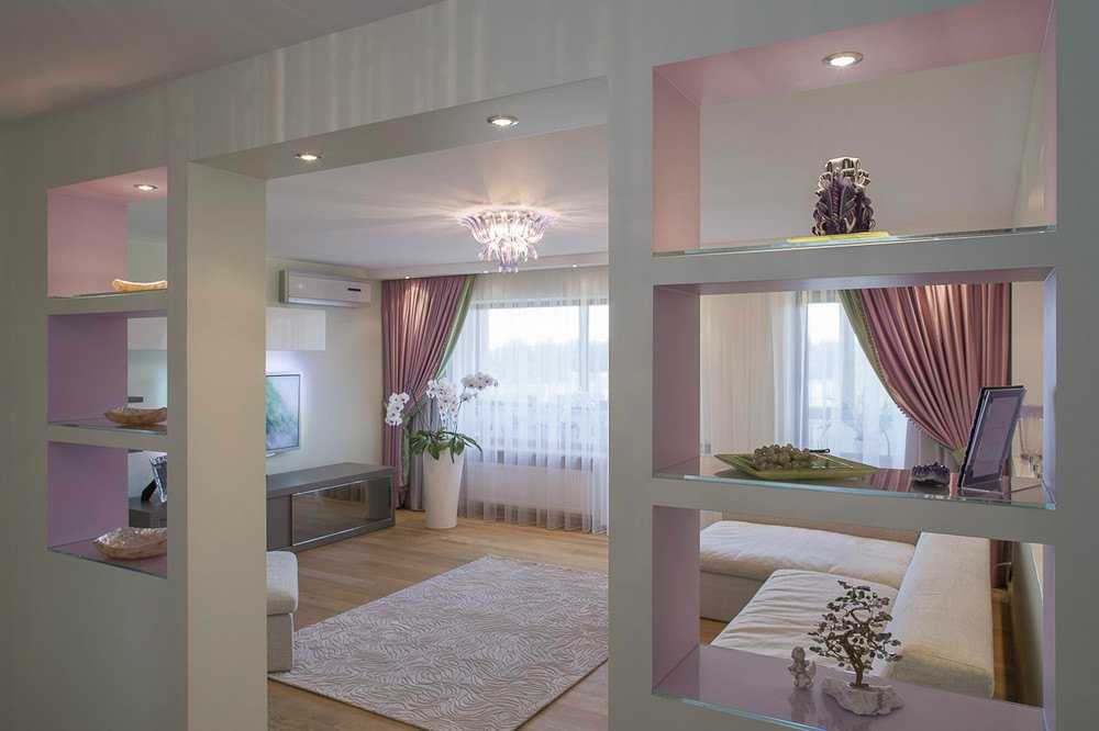 Фото-галерея поможет решить для себя, какой тип перегородки в гостиную подходит именно вам. Красивые решения обязательно порадуют, позволив фантазировать и экспериментировать в домашнем интерьере.