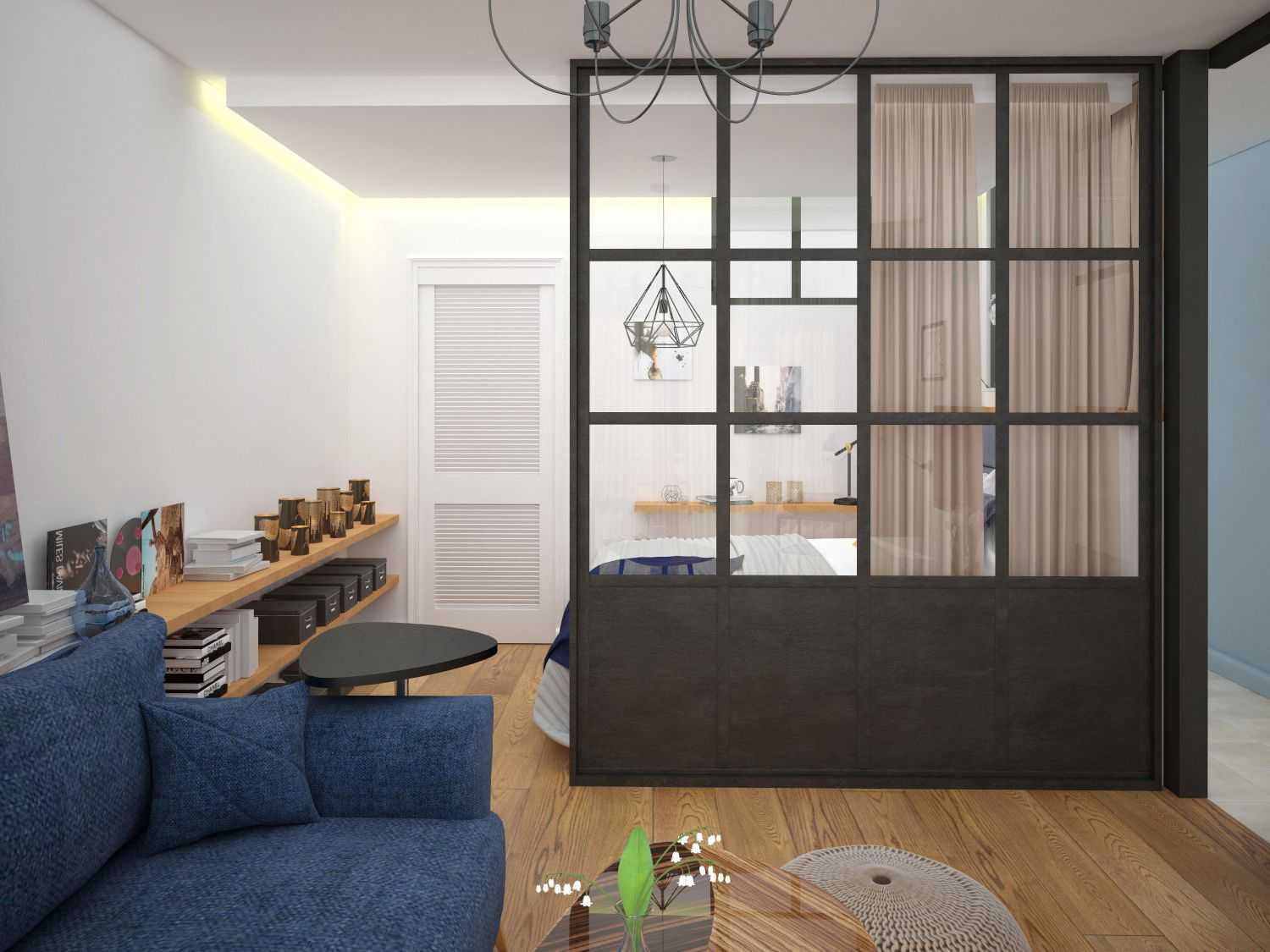 С помощью легкой перегородки можно отделить спальное место от гостиной зоны