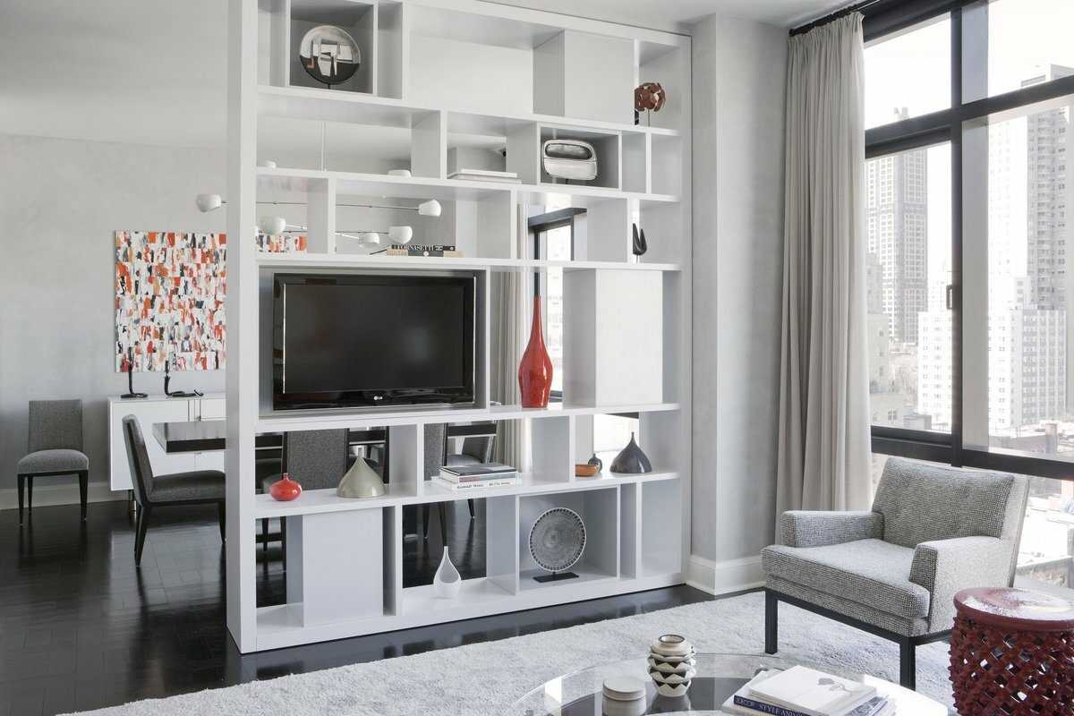 Аспект практичного использования перегородки часто упускается из виду, а потенциал стен остается неиспользованным. Если у вас достаточно места, то можете спроектировать стену для полок и встроенных шкафов на той стороне, с которой они будут наиболее необходимы. Отделив коридор от стены гостиной — вы получите место для гардероба со стороны прихожей, а с боку гостиной — дополнительное пространство для книжных полок. Конечно, рациональный и успешный проект является ключевым.