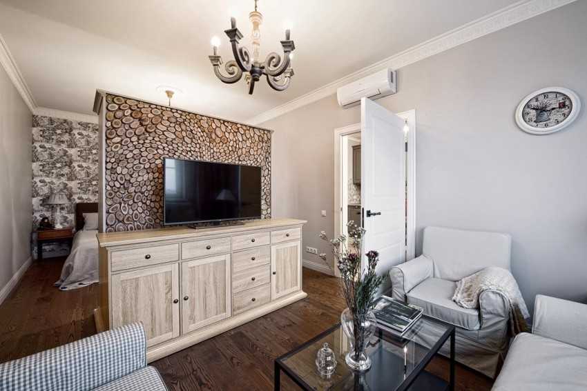 - Гостиную от спальни отделите плотными шторами, которые придадут помещению изысканный вид;