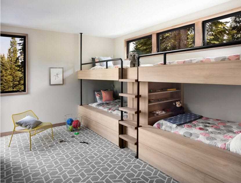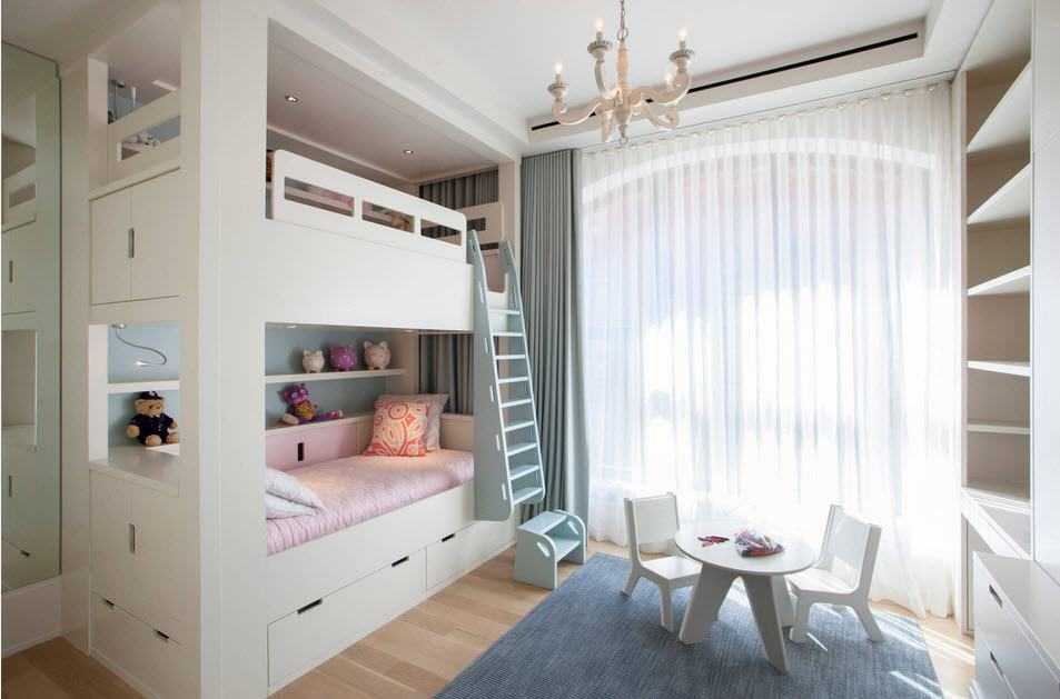Среди более привычных вариантов для современной квартиры можно рассматривать встроенную мебель, способную рационально организовать пространство, что особенно актуально в случае, если его не так много. Прежней популярностью пользуются двухъярусные кровати в детской. Современные варианты располагают дополнительными системами хранения, что позволит освободить пространство, расположив все необходимые вещи и игрушки в специальных отсеках.