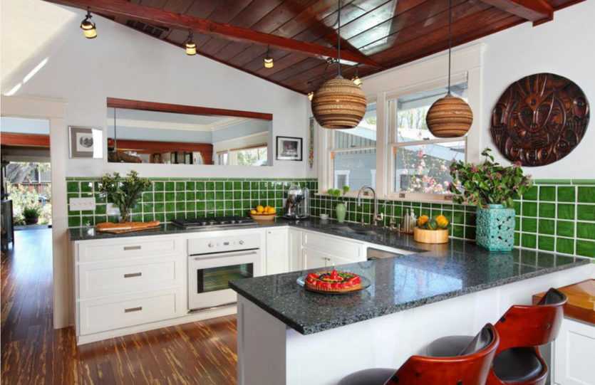 Плитка – традиционная, но предпочтение естественным тонам, в моде охра, цвет меди, красивые комбинации с темными оттенками.