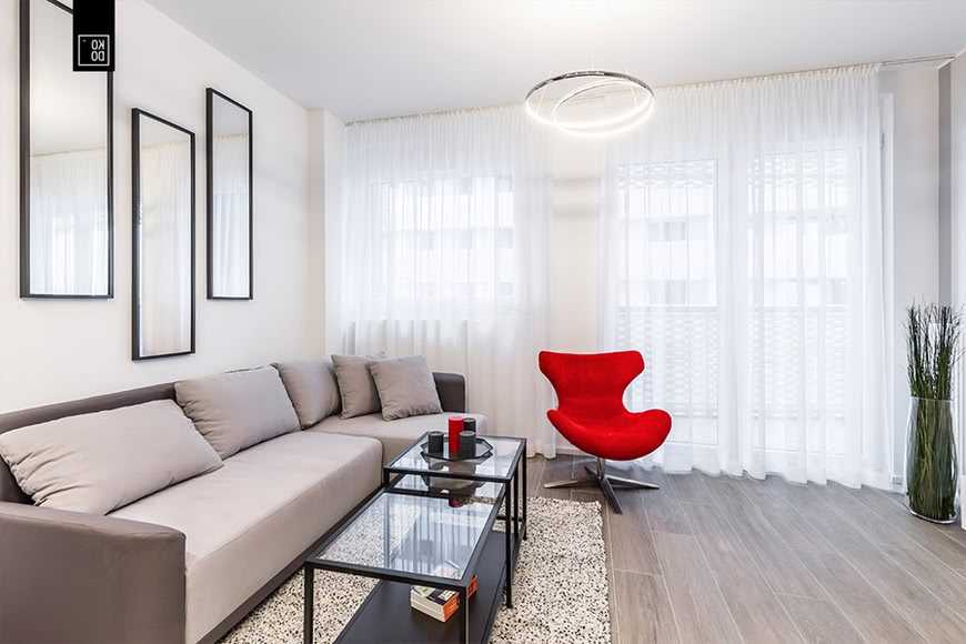 Самый простой вариант оживить комнату и добавить ей настроения – выбрать красный цвет в качестве дополняющего.